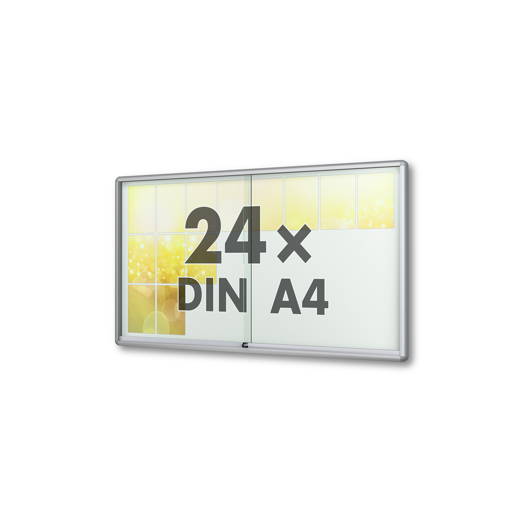 24 x DIN A4 Schaukasten Moveo - "die Schulvitrine" - mit Brandschutzklasse A1 - Rollengelagerte Schiebetüren✓ abschließbar✓ ESG-Sicherheitsglas✓