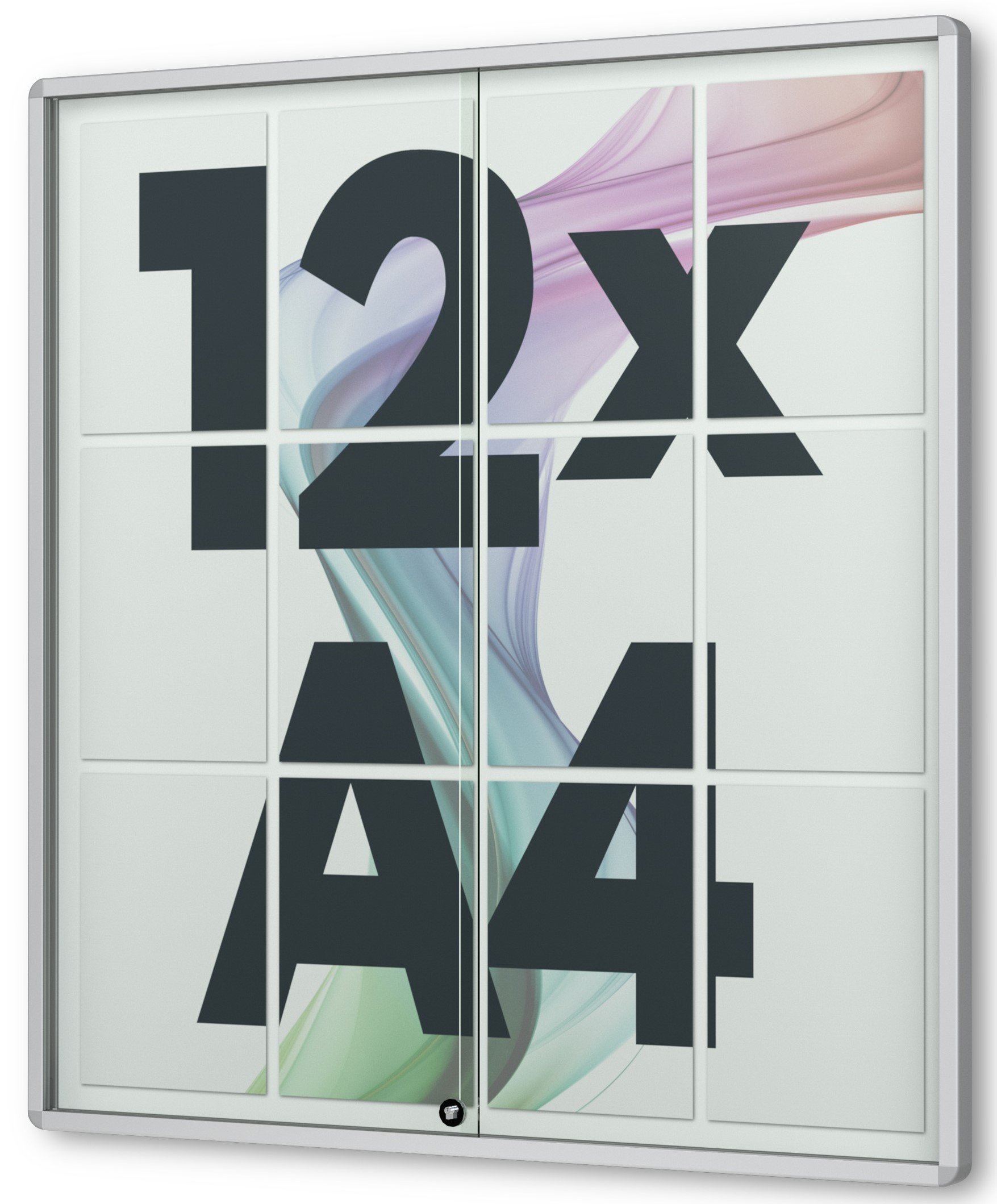 | Größe: Flachschaukasten Nexus mit Schiebetüren: | 8 × DIN A4 • 925 × 665 mm B/H, 12 × DIN A4 • 925 × 975 mm B/H, 18 × DIN A4 • 1365 × 975 mm B/H |