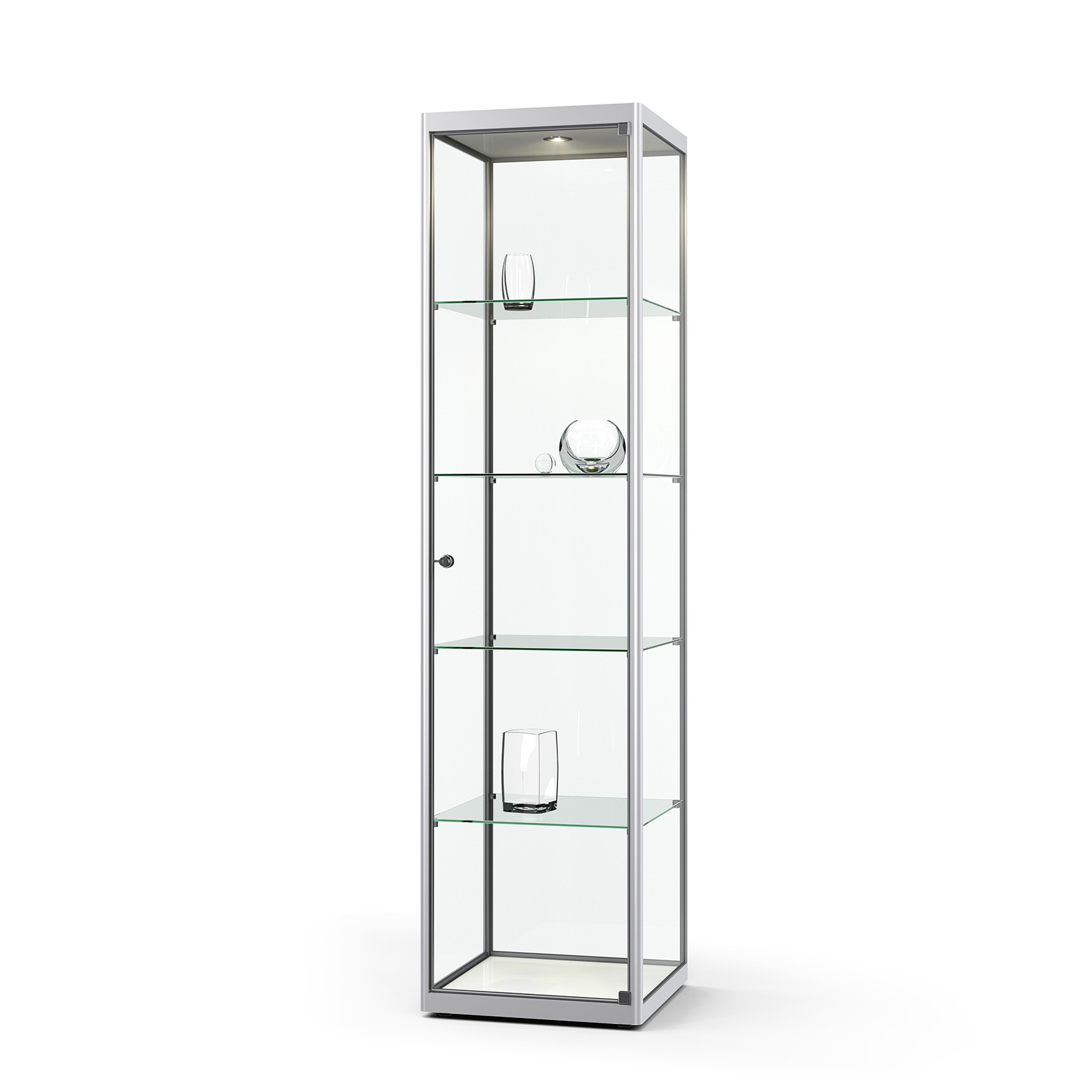 Schlanke Säulenvitrine mit schmaler Profilbreite von nur 22 mm